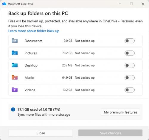 Figure 2. OneDrive Backup Folders